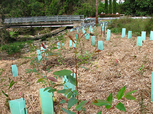 Native tree planting programs are used to rebuild damaged ecosystems and can have a powerful impact on the appearance and functionality of a site. Planting tubestock helps improve species diversity, stabilise waterways and provide long term habitat solutions. Bushcare Services has extensive experience with revegetation for offsets and compliance and our staff have the horticultural experience to oversee plantings to match planned designs.